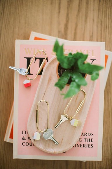 Celebrate the joy of home with this colorful, chunky key ring shaped like a cozy model house. Crafted from porcelain and brass, it’s a fun reminder...