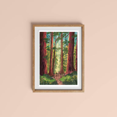 The 'Into the Trees: Giant Redwood Print' is a new landscape painting, inspired by the giant redwoods. Unframed; ready to be mounted and framed, co...