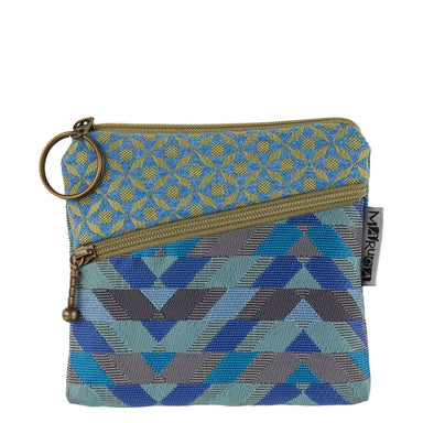 Simple with oomph! Top zip for cards & cash. Diagonal side zip for coins. Keys attach. Wipeable interior water-resistant gray liner. Guys even ...