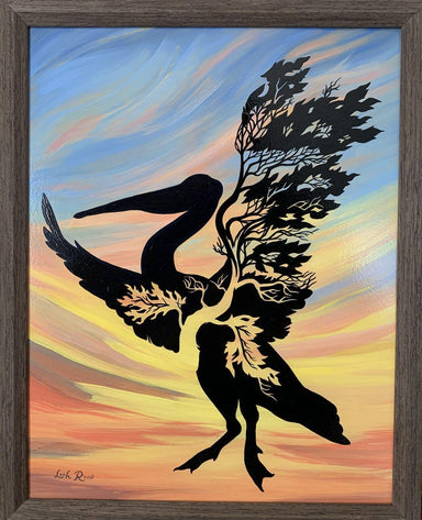 Avian Boughs Pelican 202211x14 Original Acrylic FramedA figure of a pelican intermixed with a coastal cypress tree. A series of 5 paintings of bird...
