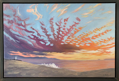 January Sunset at Seabright Beach 202530x20 Original oil on canvas Framed