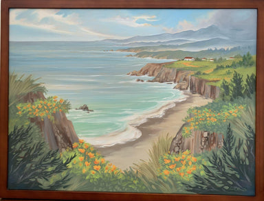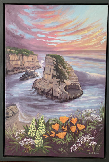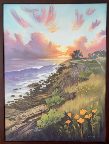 Trail’s End 202518x24 Oil The sun sets along the Mendocino coast, illuminating California Poppies. I walked this bluff trail many times as a child ...