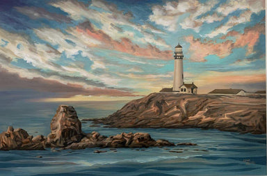 Sunrise at Pigeon Point36x24 Acrylic A passing coastal storm filters the light from the rising sun. a warm and even glow radiating off of the tower...