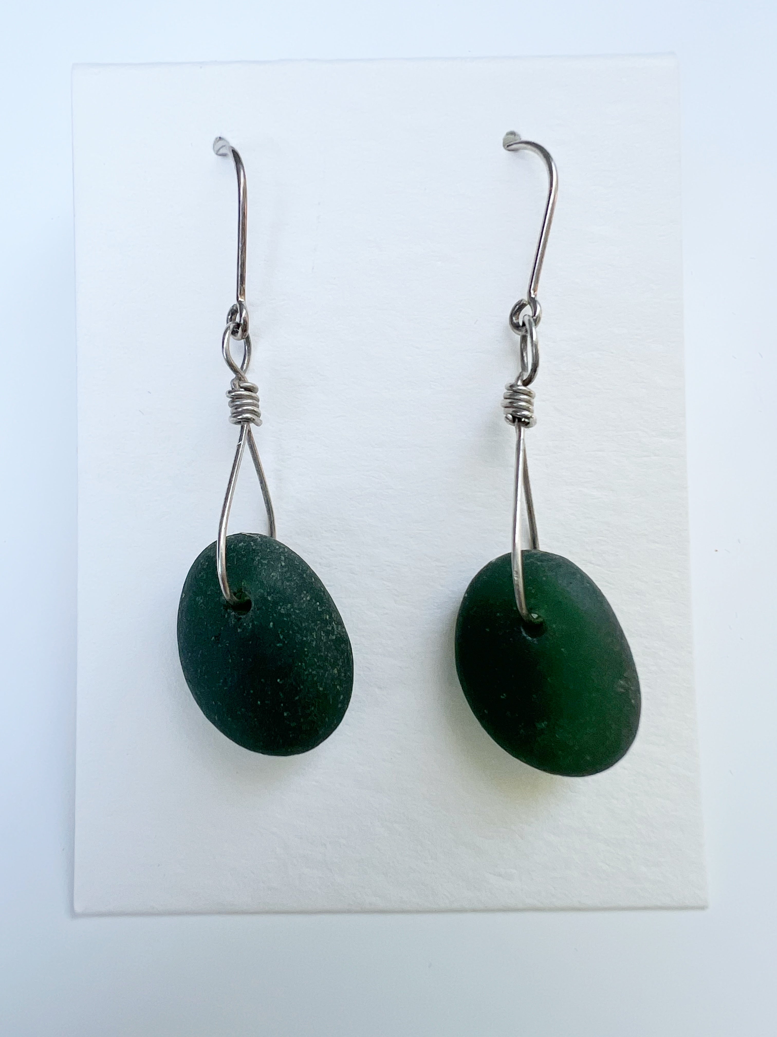 Large, perfectly rounded dark green sea glass earrings with with sterling silver earwires