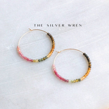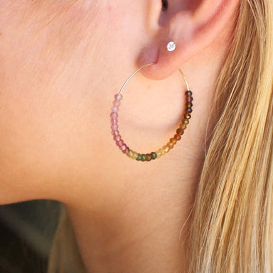 Tourmaline Gold Hoop Earrings These gorgeous hoop earrings are created with Genuine Natural Tourmaline 3mm beads beaded by hand 14kt gold fille...