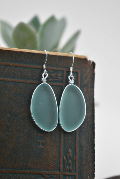 These organic shaped earrings are created with recycled glass which is processed to create smooth, frosted surfaces as if they washed ashore after ...
