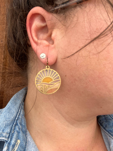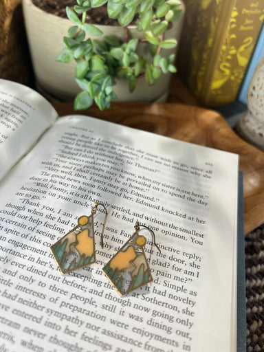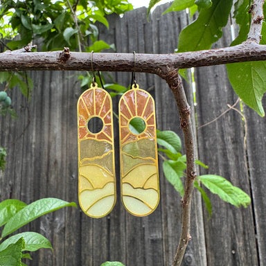 This modern earring features a brass nature-inspired design with soft-colored resin stained glass that catches the light beautifully. Handmade with...