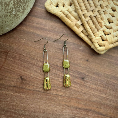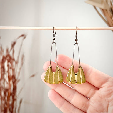 Half speckled olive, half natural clay with 24K gold accents—these handmade ceramic earrings are little works of art. Each pair is individually cra...
