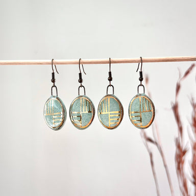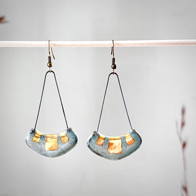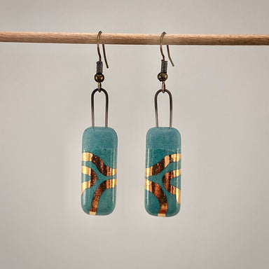 Handcrafted ceramic earrings featuring a stunning turquoise glaze kissed with 24K gold accents. Each pair is individually cut from stoneware, kiln-...