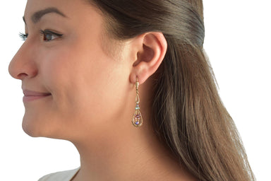 Vibrant Multicolor Drop Earrings Made in the USA with lead/nickel free antiqued brass findings. Earring wires/clips made of nickel/lead free antiqu...