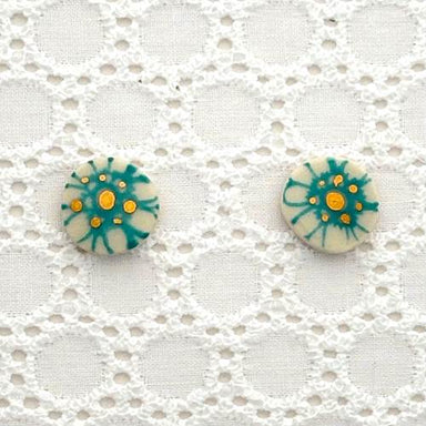 Made of hand rolled porcelain clay. Each earring shape is cut, smoothed and the hole drilled.The dried porcelain pieces are bisque fired. Next they...