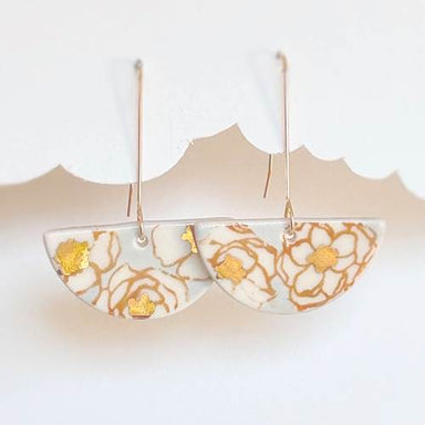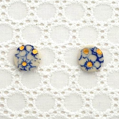 Hand painted & silk screened porcelain earrings with 18K gold luster accents. Gold filled ear wires.Handmade. Dimensions: 1" x 1"Weight: 1.00