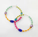 Set of bright and colorful beaded hoop earrings. These hoops are made of an assortment of beads, including hand painted glass, natural stones, and crystals beads.