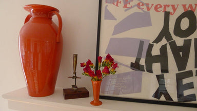Playful ceramic vase adorned with a poppy power pattern. Created by the talented Will Sanford in sunny Santa Cruz, California. The handcrafted natu...