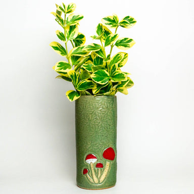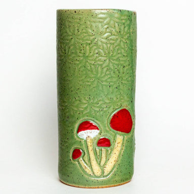 Add a touch of woodland magic to your space with this charming mushroom pattern vase! Hand-built and hand-glazed in Oberlin, Ohio, this stoneware b...