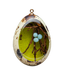 These pieces are made using real quail eggs, which come fresh from the local grocery. (Quail eggs are popular in Asian and French cuisines.) The outside of the shells are left in their wonderfully speckled natural selves. They are filled with clear resin, so they are solid and no longer fragile.