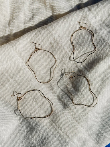 The Lea Hoops are exclusive to Desert Moon. Each pair is hand formed + hammered for texture. Simple + funky, the curves of the hoops create a playf...