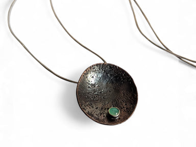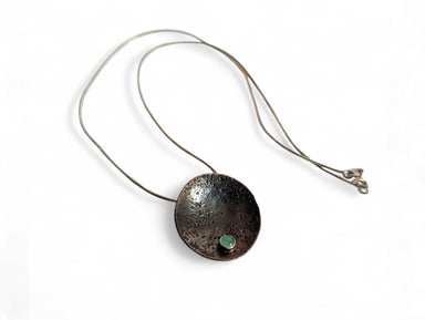Handmade Full Moon Disc with a Green Glass Cabochon As a jewelry artist and metalsmith, Deb Collins specializes in creating handmade pieces that ar...