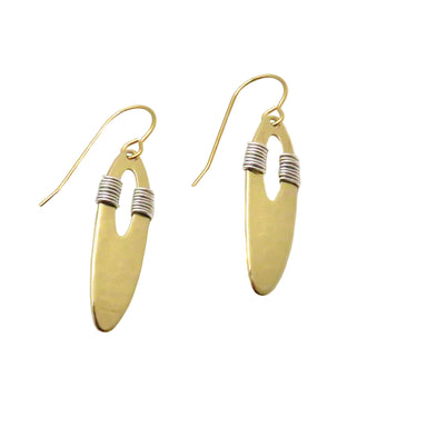 A hammered oval earring - half silver and half brass. Wire earring. A cute and wearable two-tone wire earring. Dimensions: 0.75 inches x 1 inchMeta...