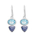 Sterling earrings feature oval cut Blue Topaz and trillion cut Tanzanite CZs. Hanging from sterling silver earwires.