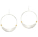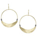 Hoop earring with domed semi-circular piece and wire-wrapping accents.