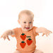 These charming strawberry-themed baby bodysuits are perfect for gifting! Offered in sizes for 6 or 12 months, they feature easy snap closures and are made from 100% ultra-soft cotton. Each imported piece is printed and packaged with care in the USA.