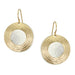 Brass textured rings layered over silver dished discs. Wire earrings.