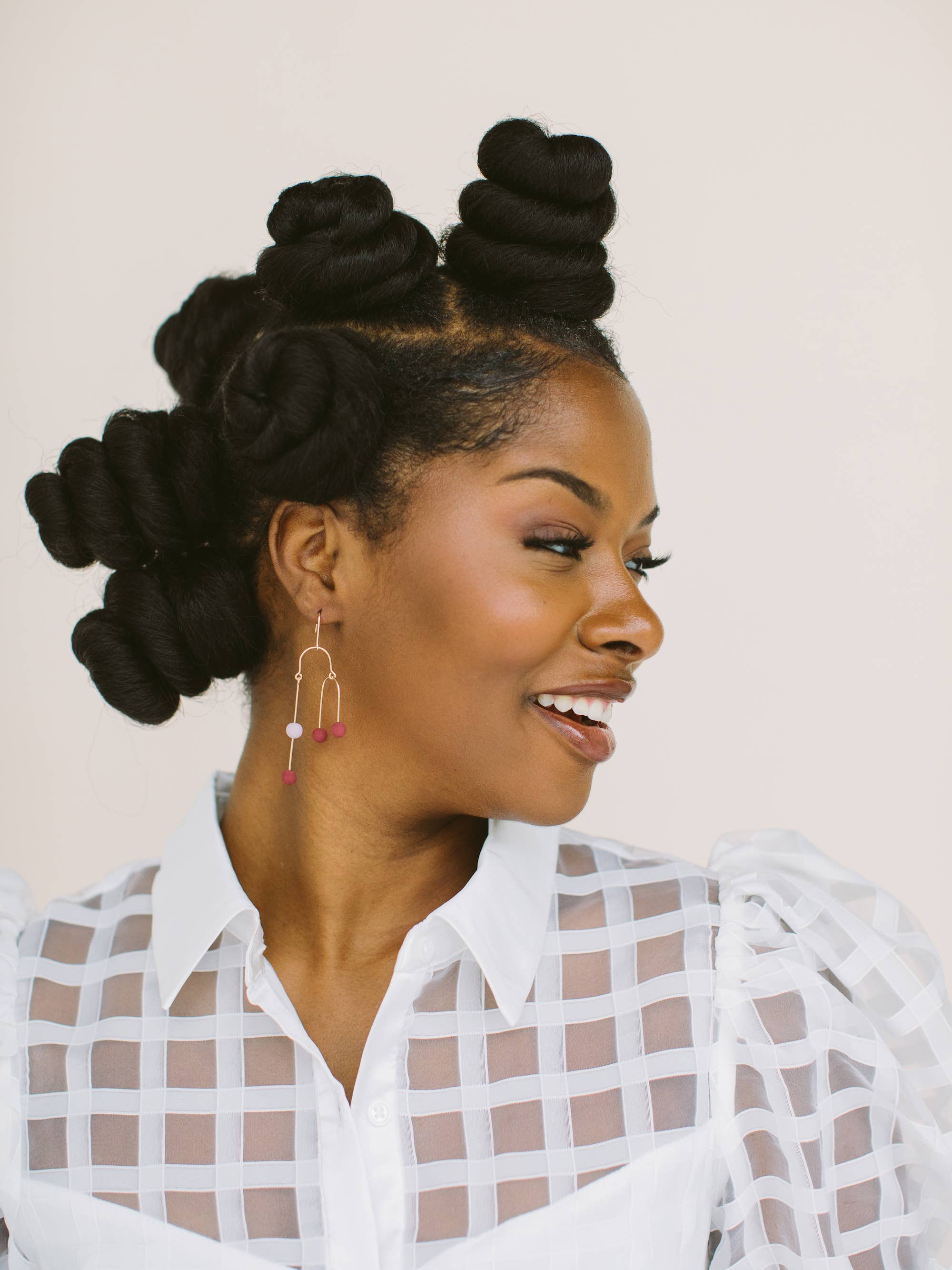 Perfectly balanced and filled with kinetic energy, our Mod Mobile Earrings are art in movement. The asymmetric wire creates an artful illusion that is unbelievably unique and modern. The dancing dots of plum and lavender or ink and matcha add a playful touch to any outfit and are guaranteed to make you smile throughout the day.ย