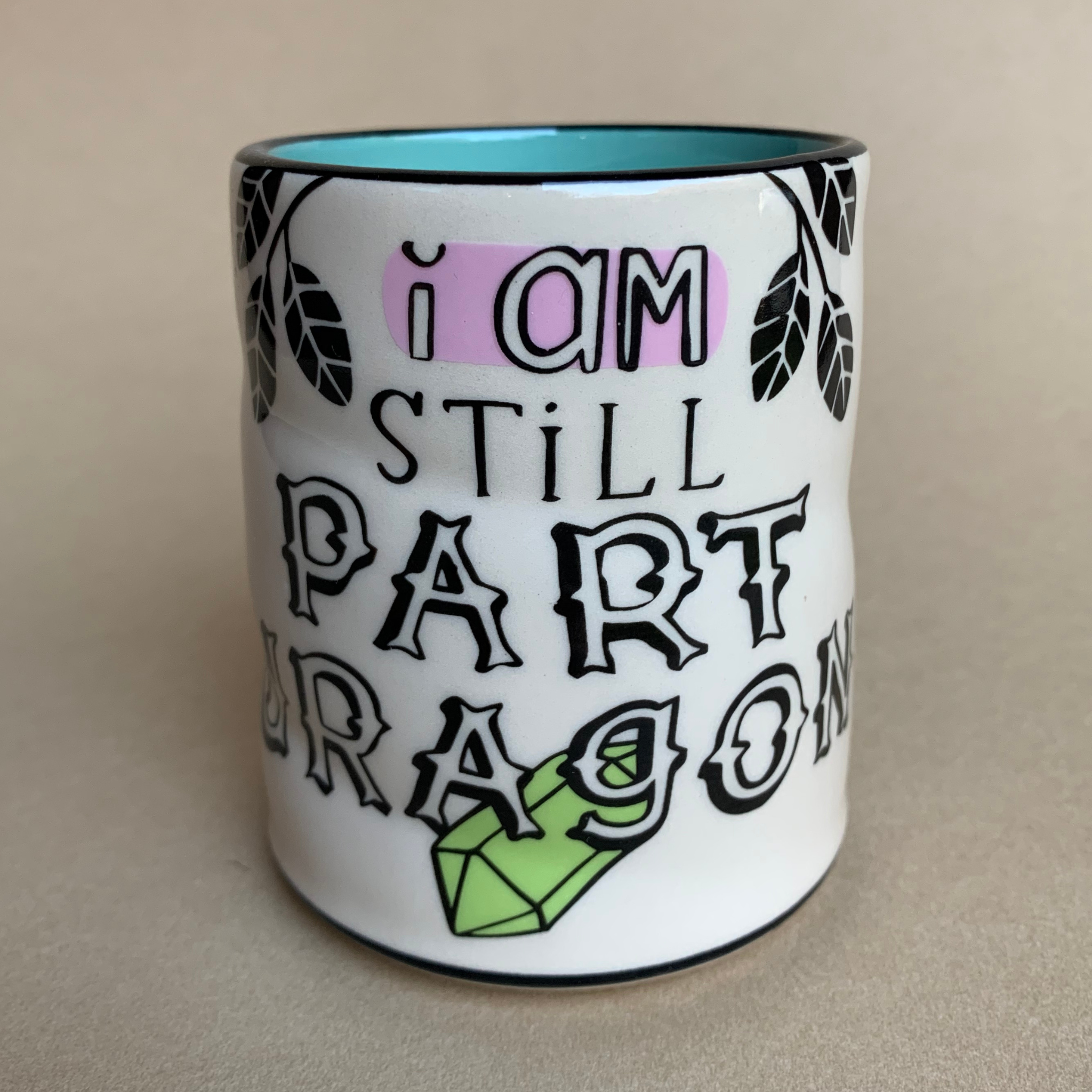 *Orders for cups are placed in mix & match increments of 24, 48, 72, 96 etc. units/pieces to provide safe & secure arrival.* The Spark Cups are my painted poems upon a cup, with a bit of wonder and kindness stirred into the art for good measure. • Yes Dragon Spark Cup • Size: Large (9 fl. oz.) • Ceramic • Measures diameter 3” height 3.5” • Art on all sides. • Comfortable to hold with a unique thumb The wares are food, microwave, and dishwasher safe, as well as family and café proven strong. Third party tested for food safety. Designed in my Washington State studio, made in Thailand in a facility meets European standards for people and planet. Your hands deserve to be happy holding this cup!
